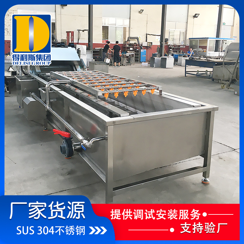 以高壓風機風力或水泵的壓力使水產生強烈攪拌運動,使物料在水中翻滾,從而達到清洗效果,節水效果好。采用氣泡翻滾、刷洗、噴淋技術,對物料進行清洗,流水線中各單機可根據用戶各自不同的加工特點量身定制,滿足工藝要求,清洗運行速度無ji可調,用戶可根據不同的清洗內容任意設定,該機結構緊湊,自動化程度高。